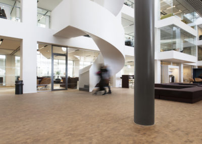 KUA3 var sidste etape i Københavns Universitet Amager, og her spillede Tæppeland Erhverv også en stor rolle for at få kronen på værket helt perfekt. Der blev både lagt linoleum og trægulve, men der skulle også bygges et podie, forskellige ting under loftet og en trappe i træ, hvor finishen og håndværket spillede en afgørende rolle for det samlede udtryk.